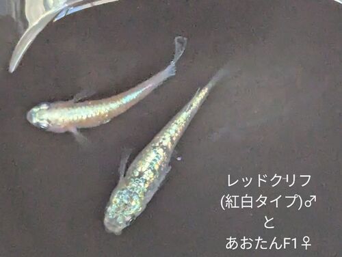 令和7年1月からこんな組み合わせで掛け合わせを開始。 レッドクリフ紅白タイプの♂ あおたんF1の♀ どちらも選外で、通常なら外のミックス容器行き。 とは言えここまで加温して育てたのに、1月でまだ寒い時期にいきなり外に放り出すことも出来ない 余った加温…