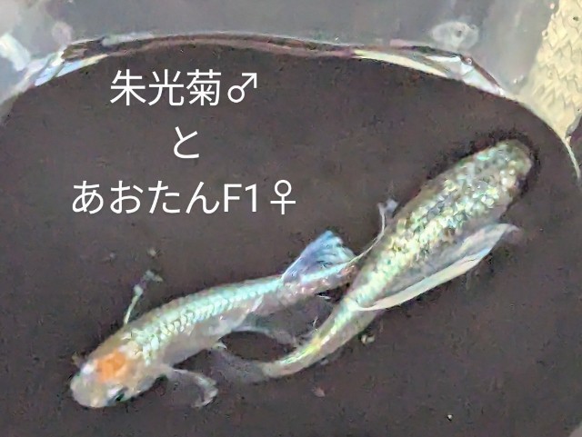 目的はあおたんに朱光菊のようなヒレを遺伝させたいため。